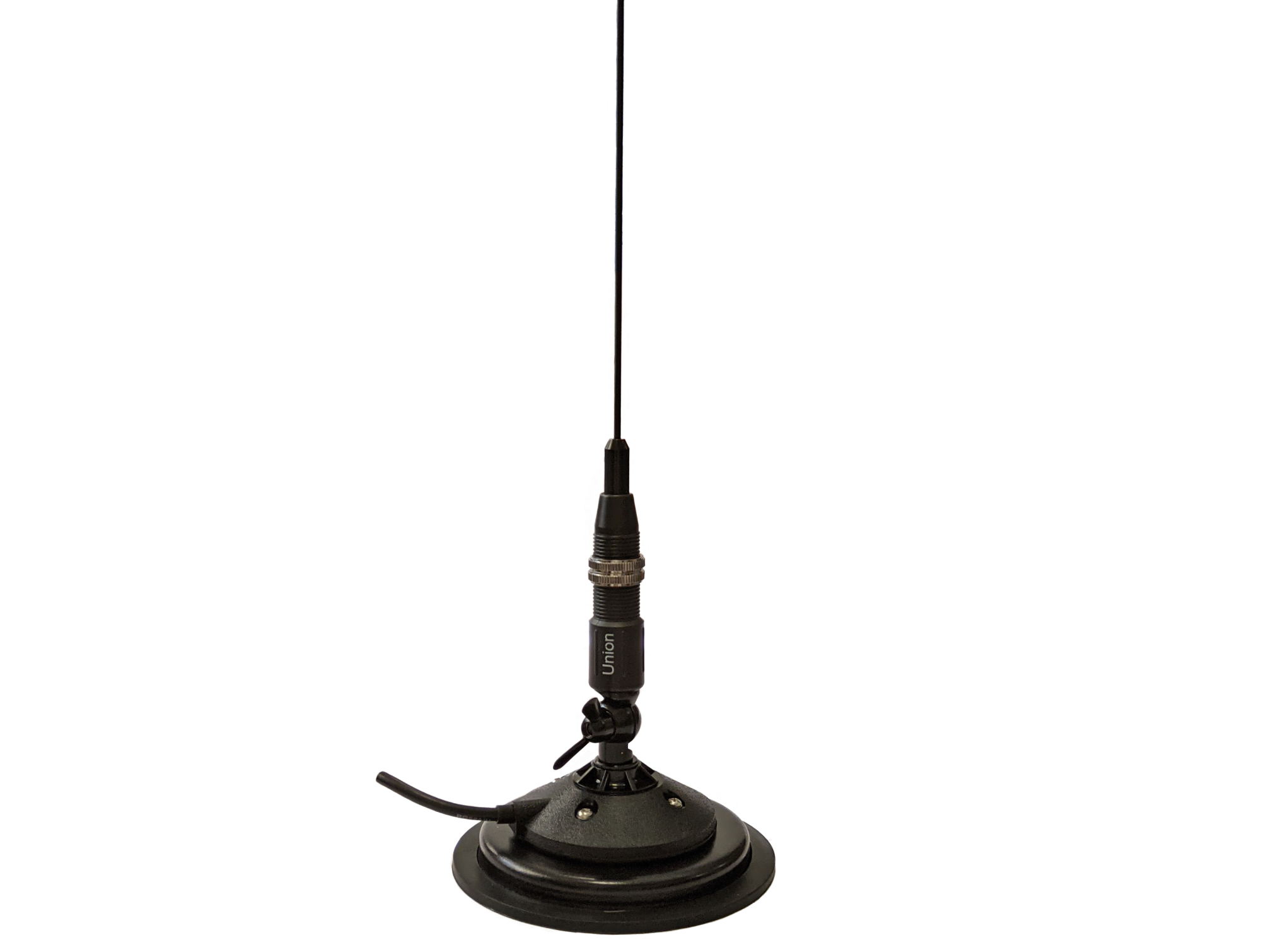 Антенна для работы в диапазоне 27 МГц CB для установки на автомобиль UNION CB MAG отличается небольшой высотой всего 1,1м. Чёрный штырь антенны делает её менее заметной. Тонкая подстройка осуществляется не только укорочением длины штыря антенны, но и специальными металлическими кольцами на корпусе катушки. Магнитное основание DV диаметром 120мм обеспечивает надёжность установки.